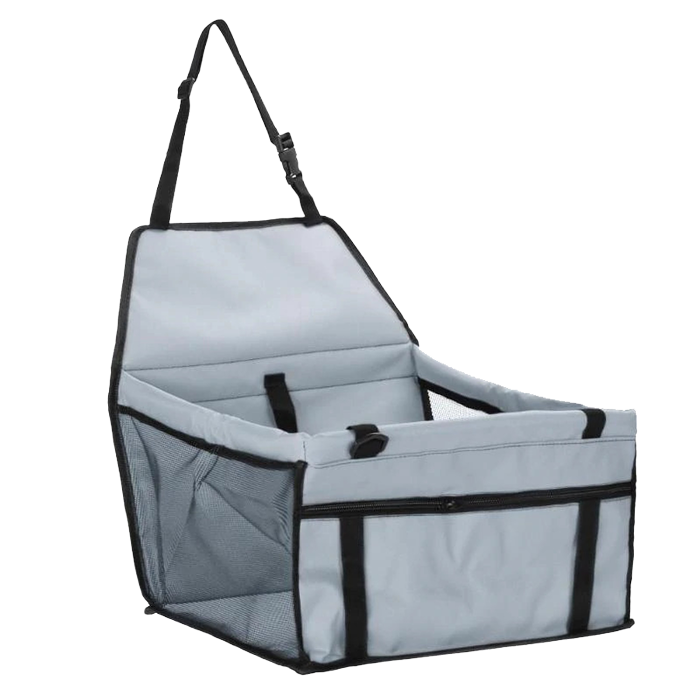 Grey Folding Pet Dog Carrier for your car, featuring a waterproof pad